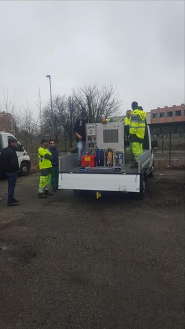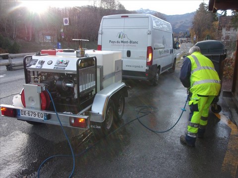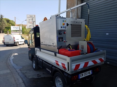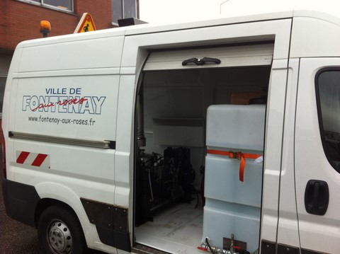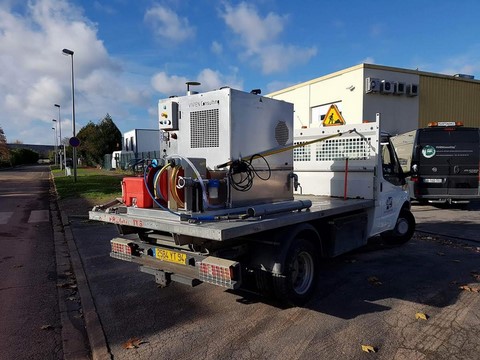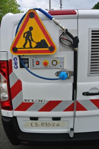 Fourniture d'un deuxième matériel pour la ville, après l'acquisition d'un matériel hydroaérogommage essence eau chaude, fourniture de notre dernière nouveauté, le nettoyeur haute pression diesel eau chaude embarqué dans un véhicule.