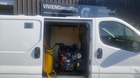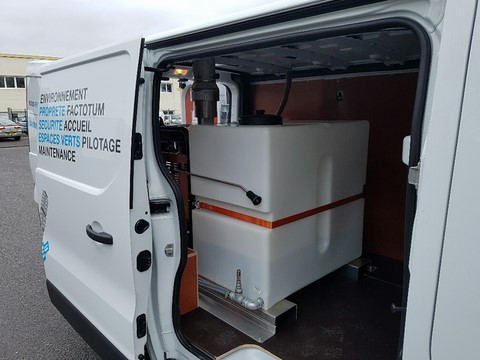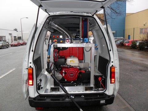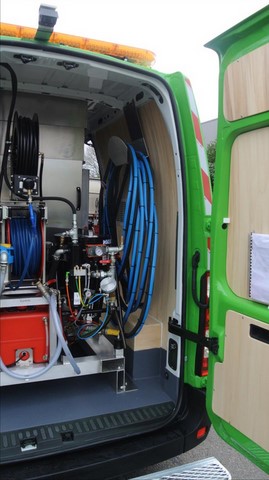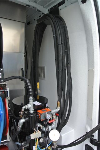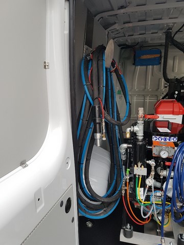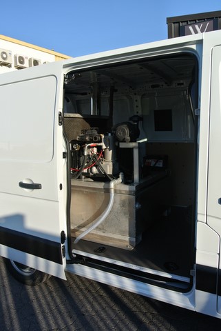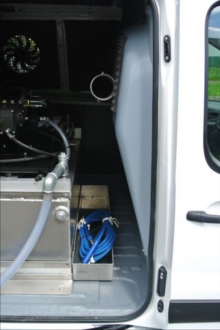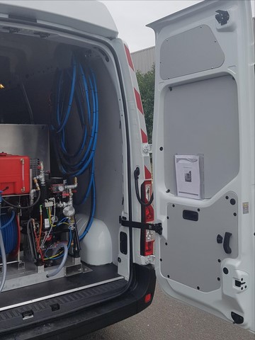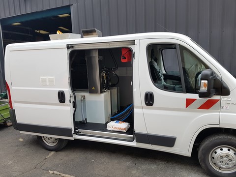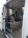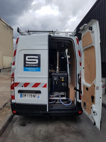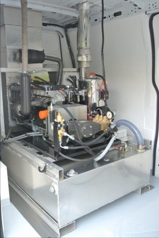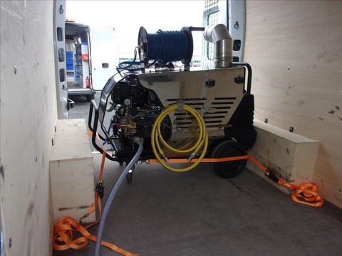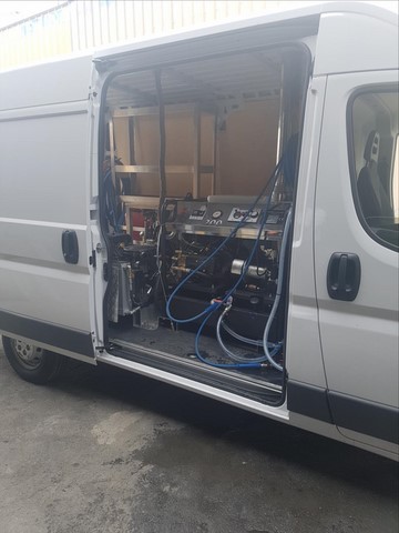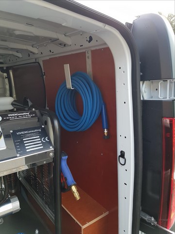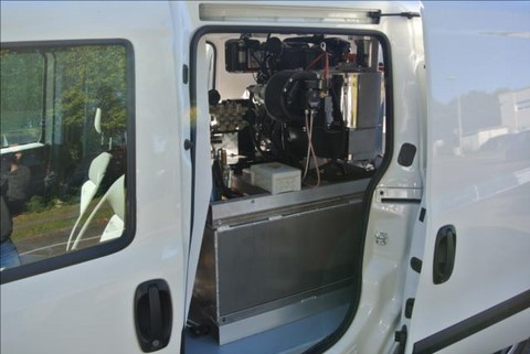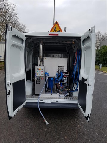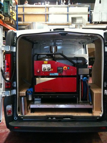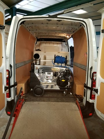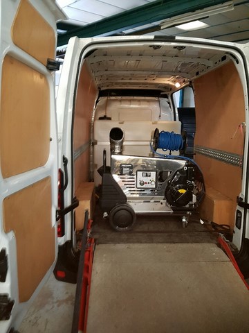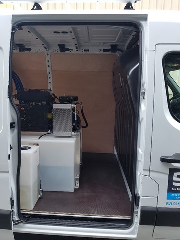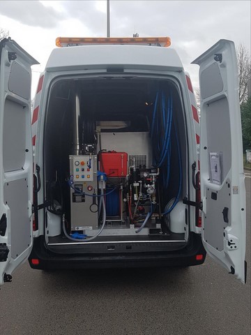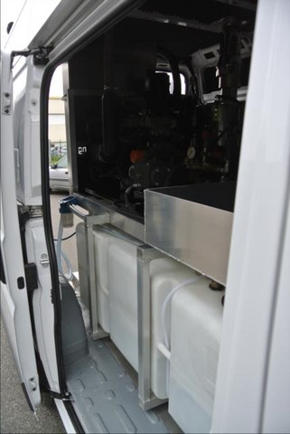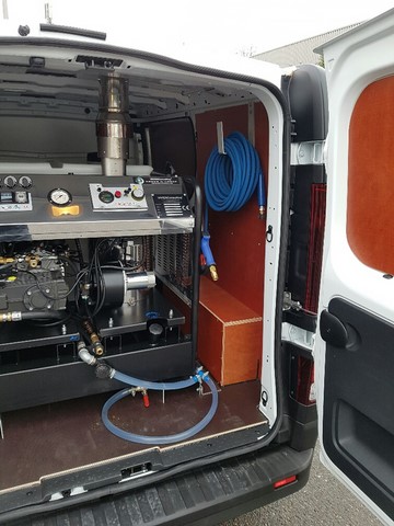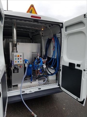 Livraison d'un nettoyeur haute pression eau chaude et aménagement complet d'un petit atelier dans véhicule utilitaire.