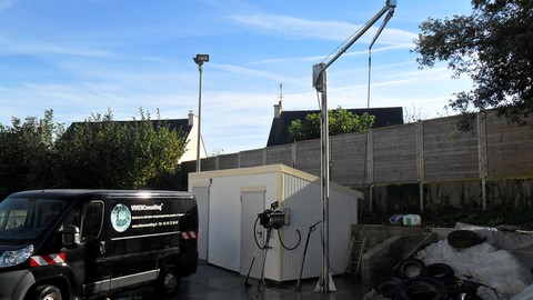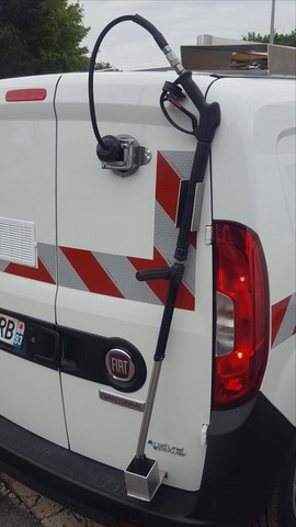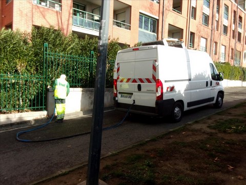Fourniture d'une potence sur véhicule équipé haute pression eau chaude, pour réaliser des travaux de désherbage.