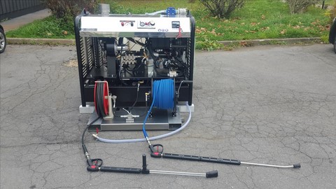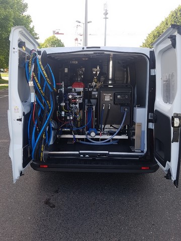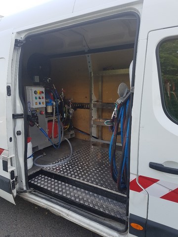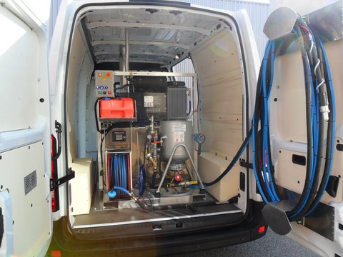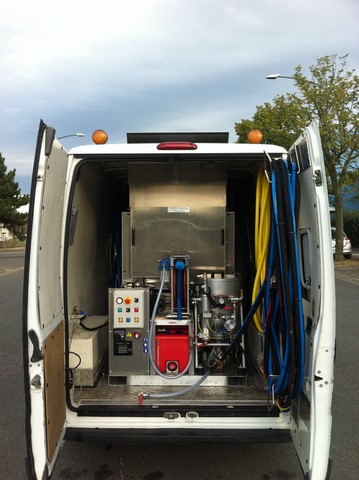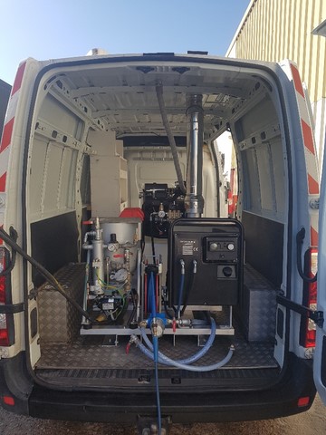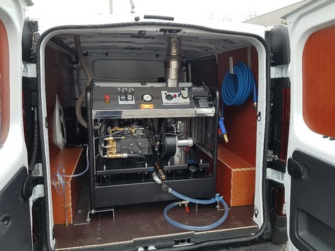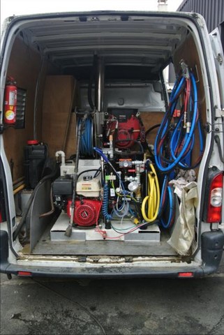 Livraison et formation sur un nettoyeur haute pression diesel avec ses différents accessoires et installation, aménagement complet dans un fourgon.