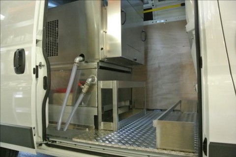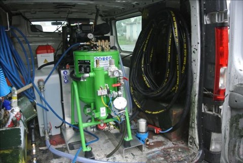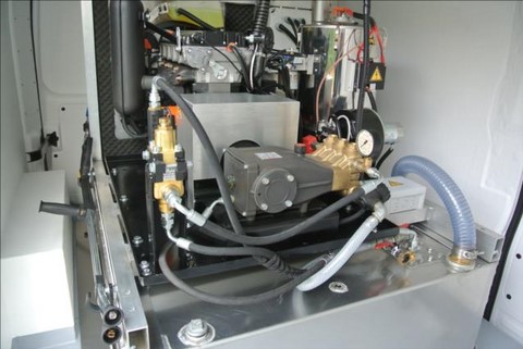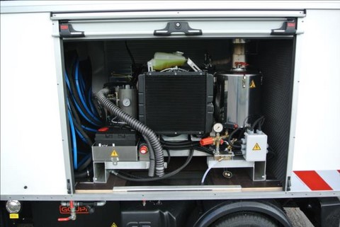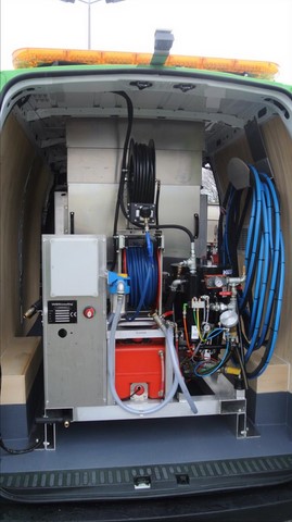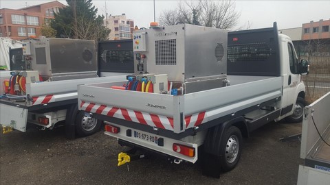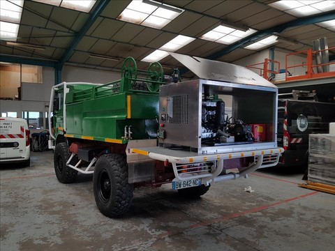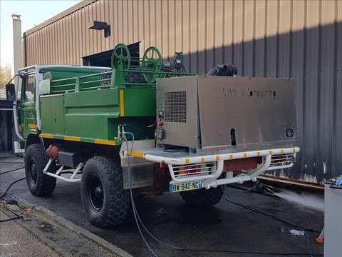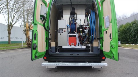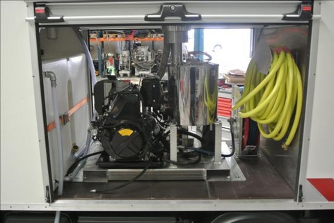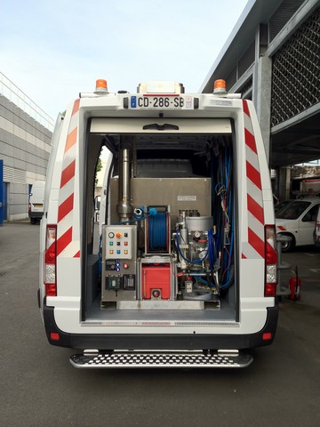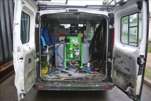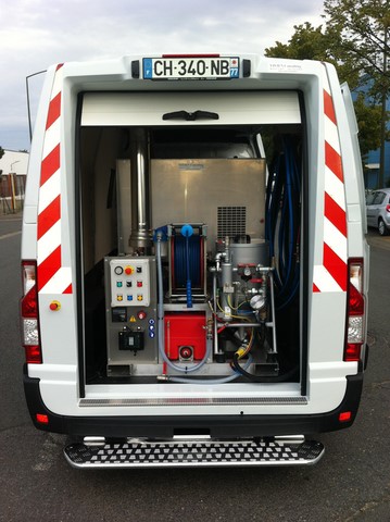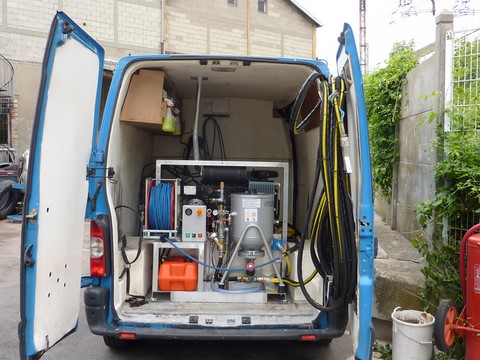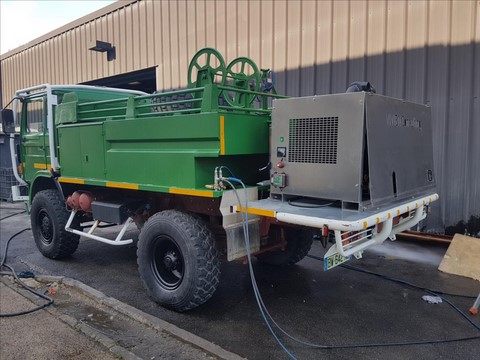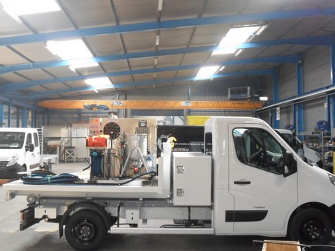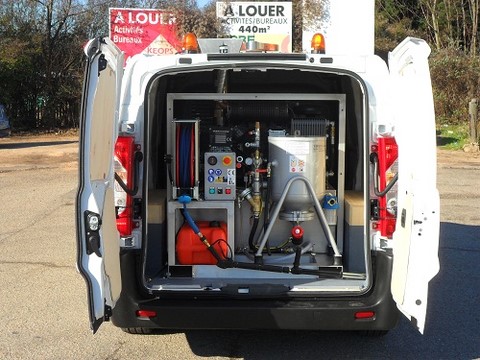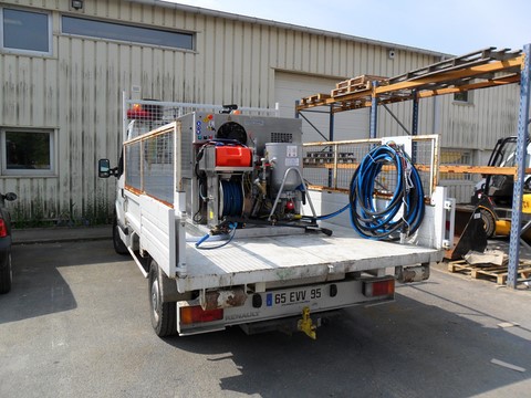 Reaménagement avec modifications d'un véhicule d'intervention pour travaux de décapages, nettoyages: Nettoyeur Haute Pression double Postes eau chaude-350 bars