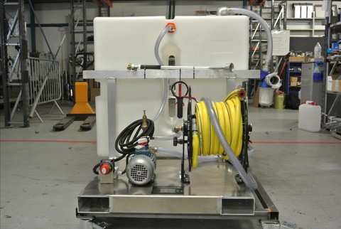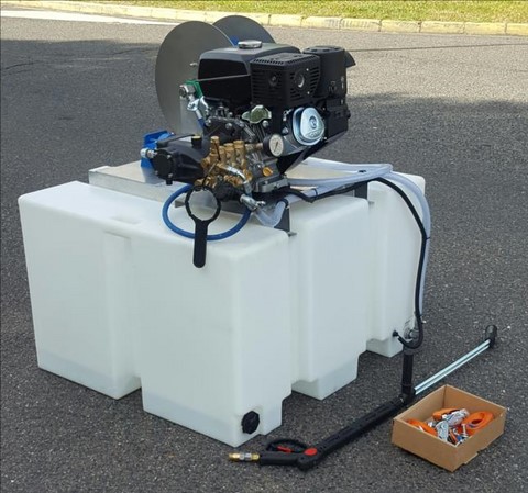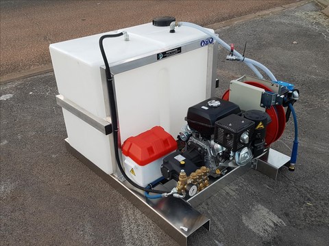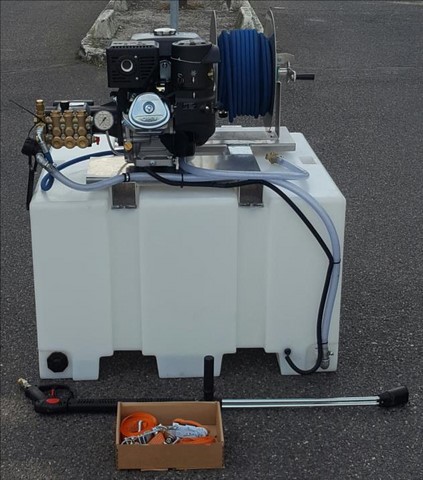 Livraison d'un nettoyeur haute pression 180 bars 12 litres eau froide sur cuve aluminium 300litres avec enrouleur automatique.