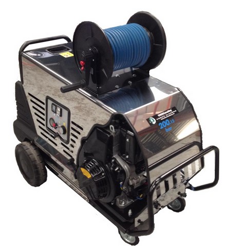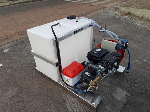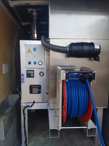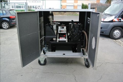 Equipement hp 250 bars eau froide capoté et insonorisé avec enrouleur et potence de lavage