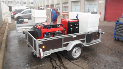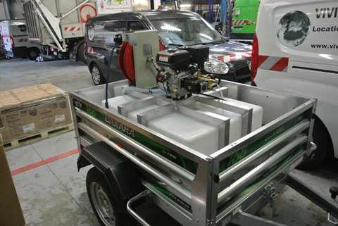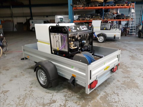 Fourniture et installation d'un matériel nettoyeur haute pression eau chaude Eessence HPECH sur remorque