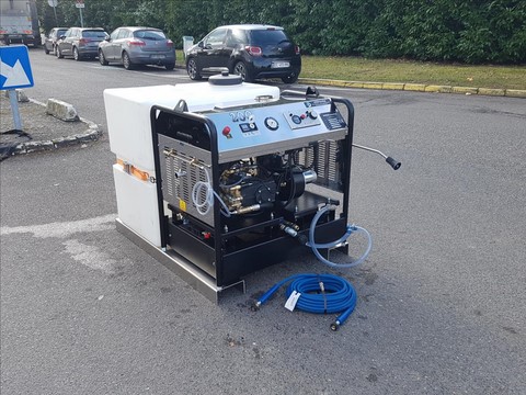 Fourniture d'un nettoyeur haute pression eau chaude monophasé ultra compact et mobile.