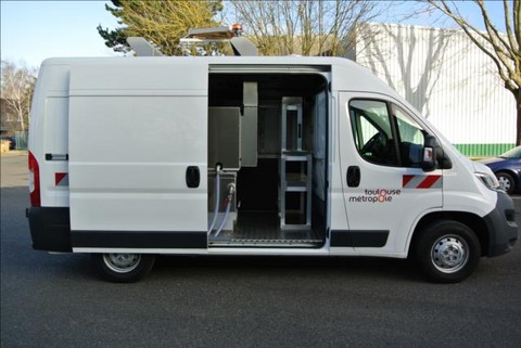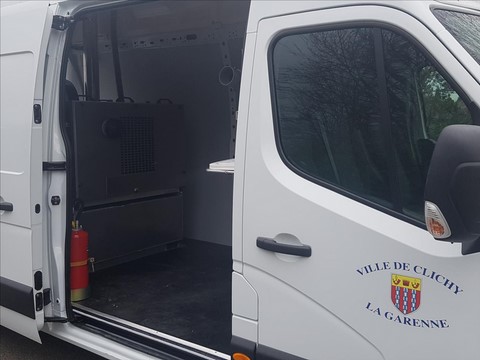 Equipement d'un master L3H2 avec signalisation, peinture anti-dérapante, meuble de rangement et un ensemble hydro-aérogommage hp eau chaude double postes.