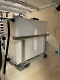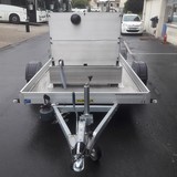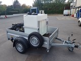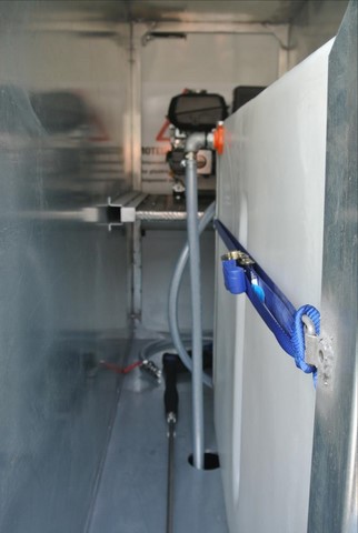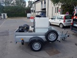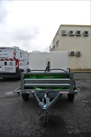 Livraison d'une remorque hydro aéro gommage hp eau chaude capotée moins de 750 kgs avec, option sablage ainsi qu'une cuve à eau verticale de 400 litres placée dans le sens de la longueur dans un kangoo.