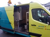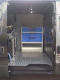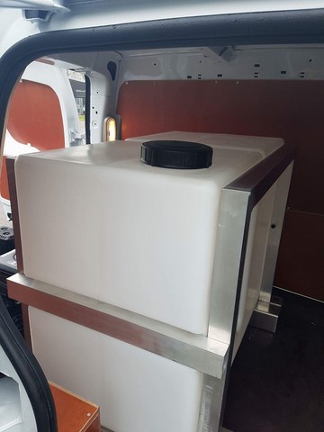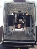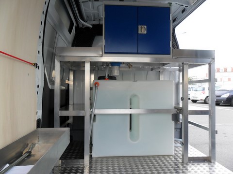 Aménagement complet de leur véhicule d'intervention anti tag avec fourniture d'une cuve à eau complémentaire, vestiaire, et armoires de rangement.