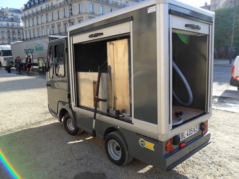 Nouveauté! Piaggo Maxxi 1100 kgs transformé au GPL avec caisse munie de rideaux et équipée d'un ensemble hydro aérogommage haute pression eau chaude insonorisé.