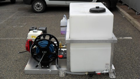 C'est le matériel le plus compact du marché tout en ayant une autonomie de 300 litres d'eau avec les fonctions hydro aéro gommage et haute pression.