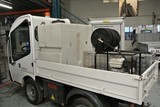 Nous sommes en mesure de vous proposer différentes versions de véhicules électriques, fourgon, plateau équipés de  skid nettoyeurs haute pression autonomes ou skid hydroaérogommage