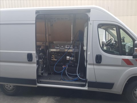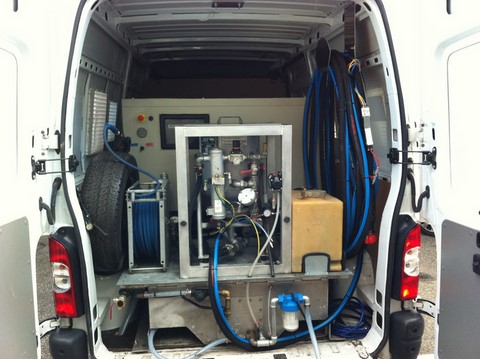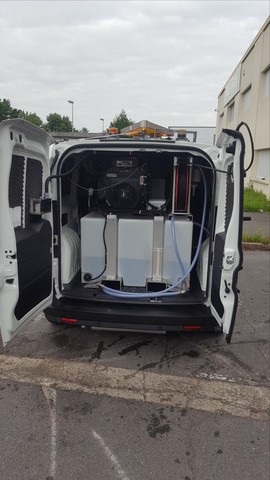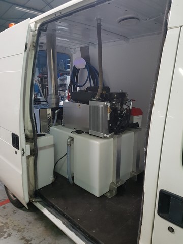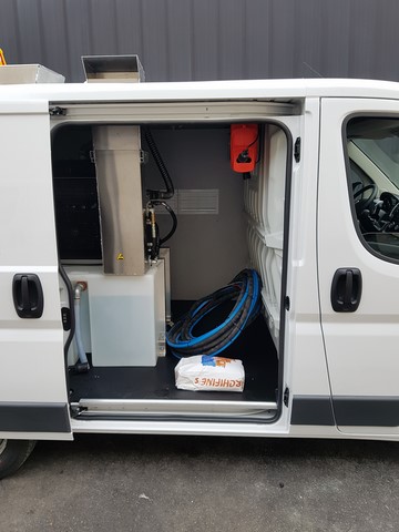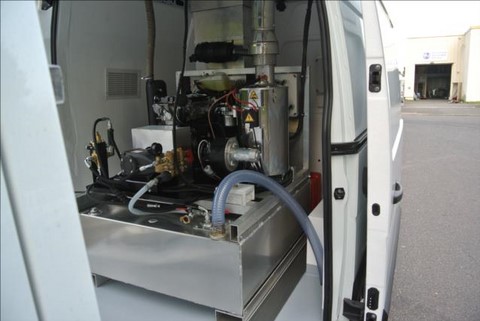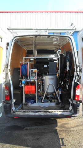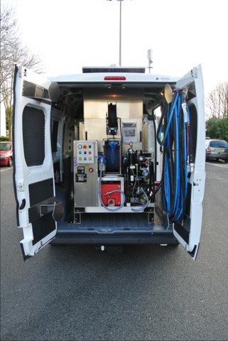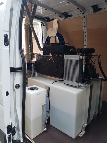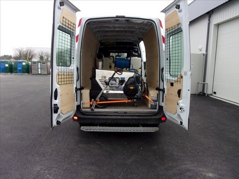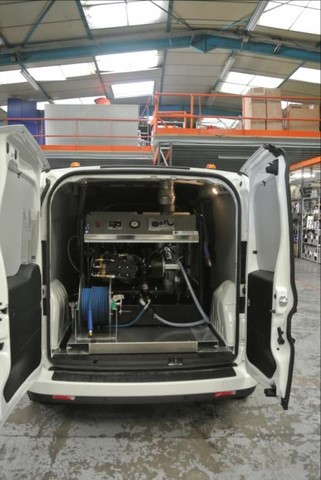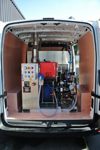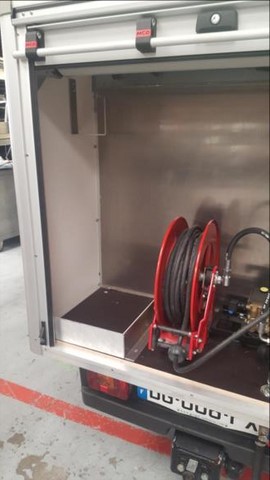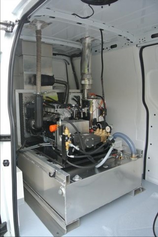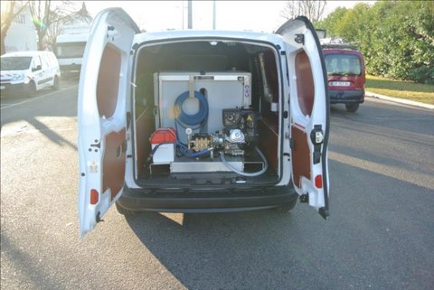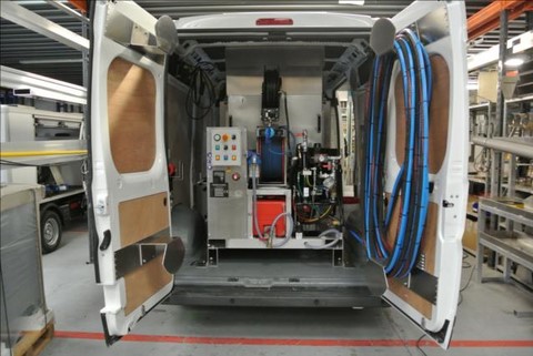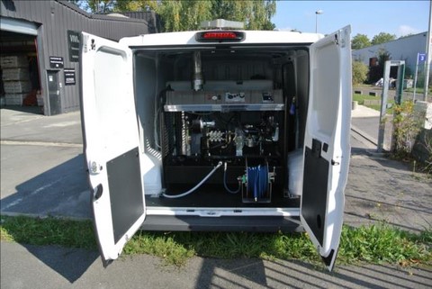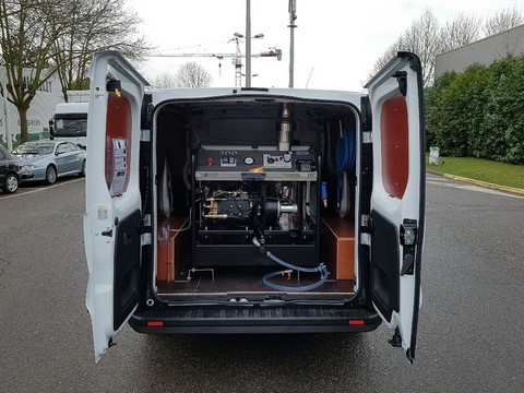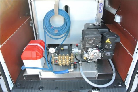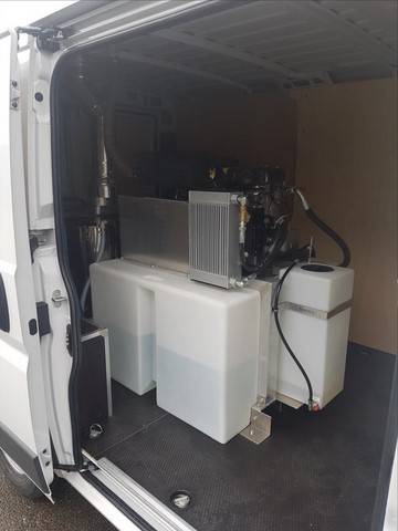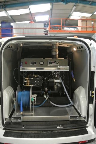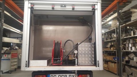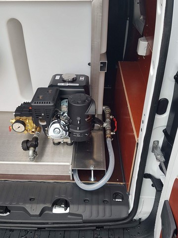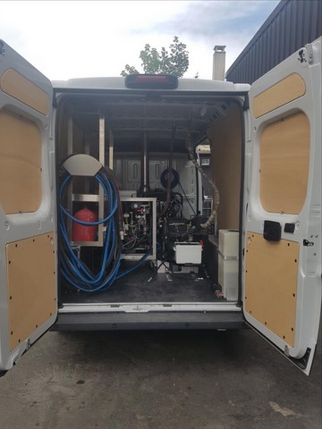 Livraison d'un nettoyeur haute pression eau chaude et aménagement complet d'un petit atelier dans véhicule utilitaire.