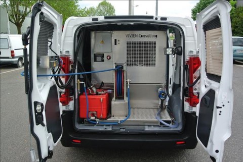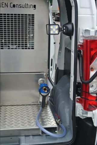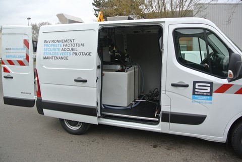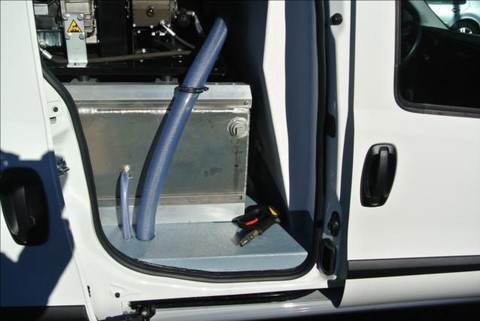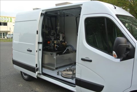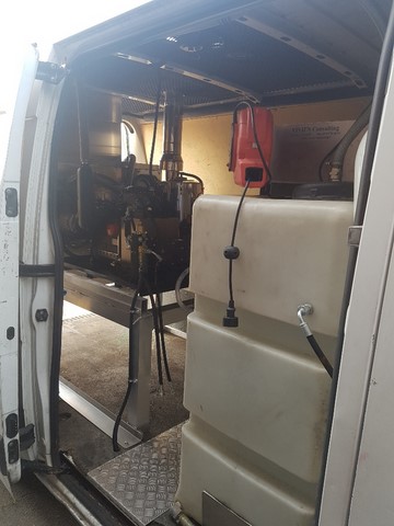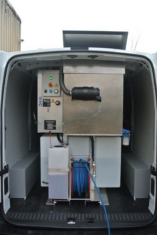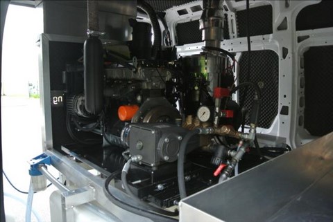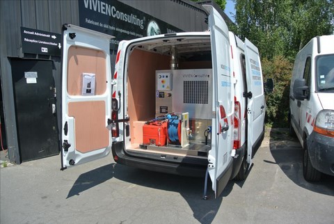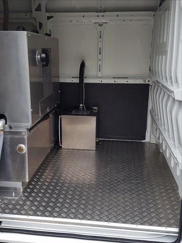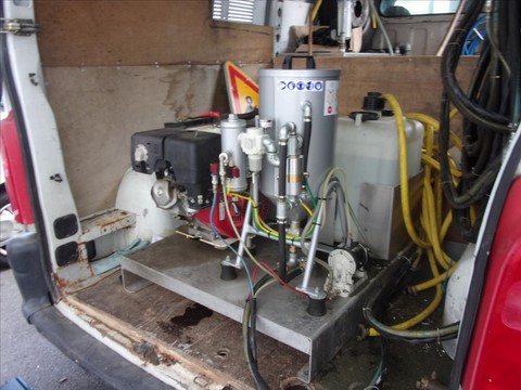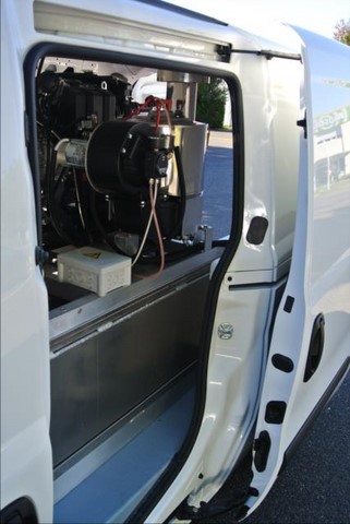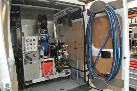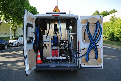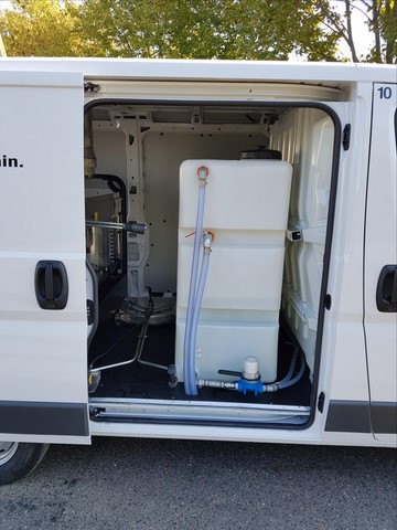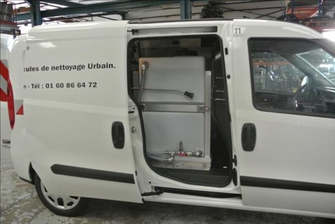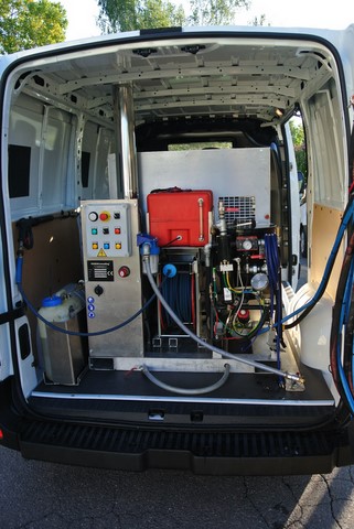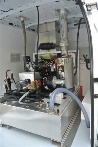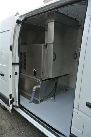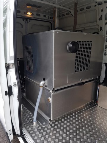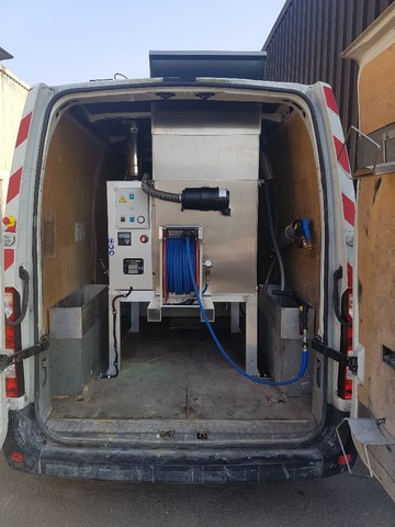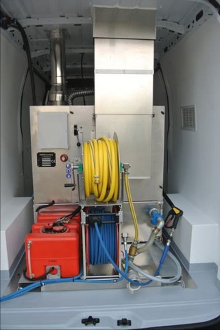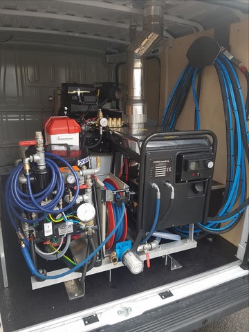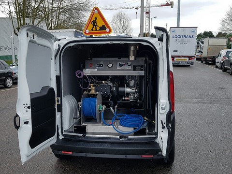 Livraison d'un nettoyeur haute pression eau chaude et aménagement complet d'un petit atelier dans véhicule utilitaire.