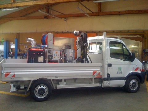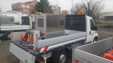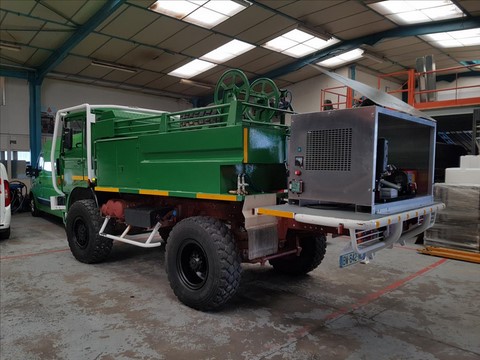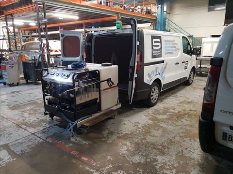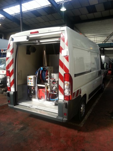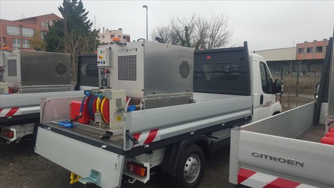 Reaménagement avec modifications d'un véhicule d'intervention pour travaux de décapages, nettoyages: Nettoyeur Haute Pression double Postes eau chaude-350 bars