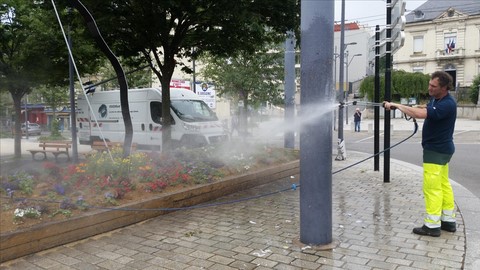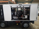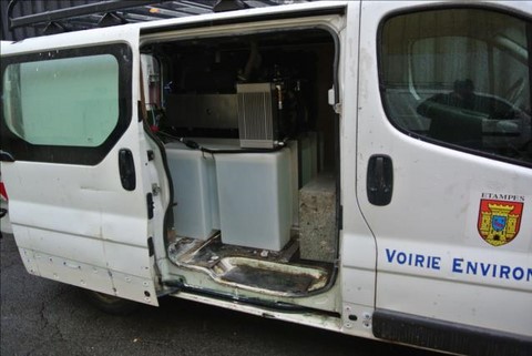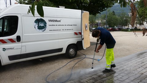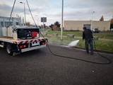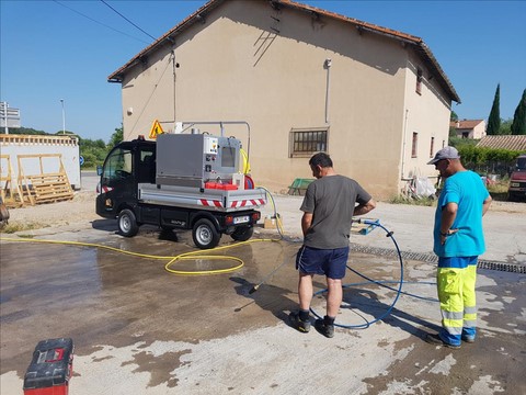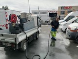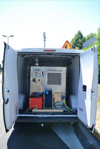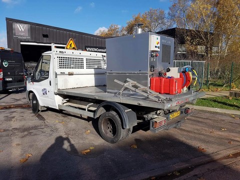 Fourniture d'un deuxième matériel pour la ville, après l'acquisition d'un matériel hydroaérogommage essence eau chaude, fourniture de notre dernière nouveauté, le nettoyeur haute pression diesel eau chaude embarqué dans un véhicule.