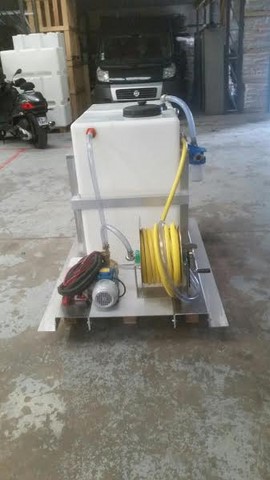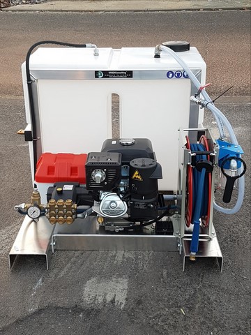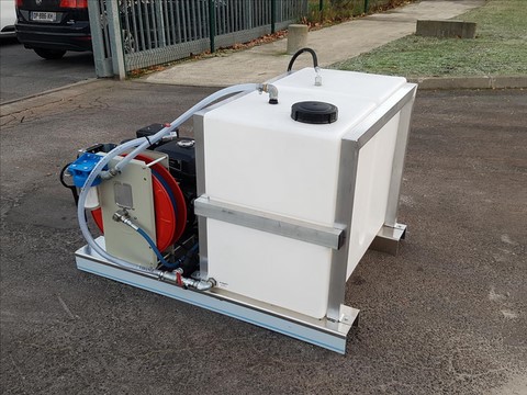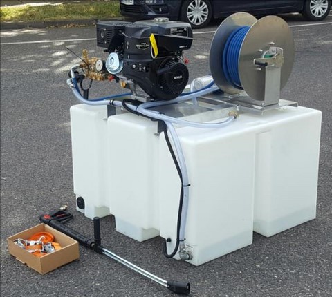 Livraison d'un nettoyeur haute pression 180 bars 12 litres eau froide sur cuve aluminium 300litres avec enrouleur automatique.