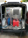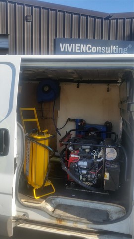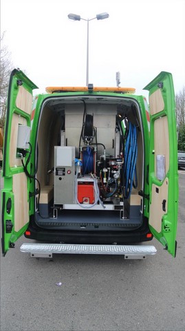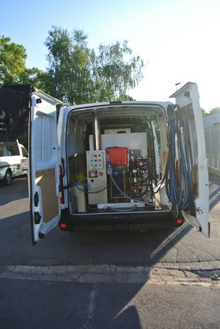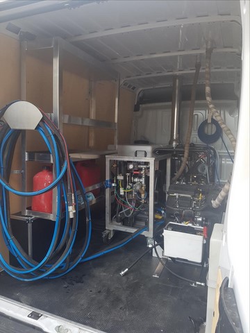 Livraison et formation sur un nettoyeur haute pression diesel avec ses différents accessoires et installation, aménagement complet dans un fourgon.