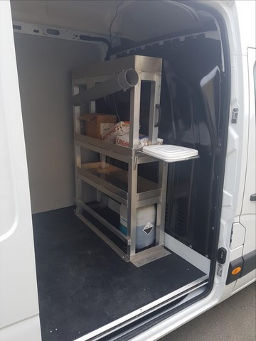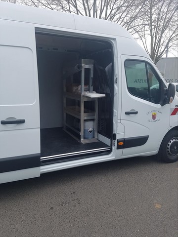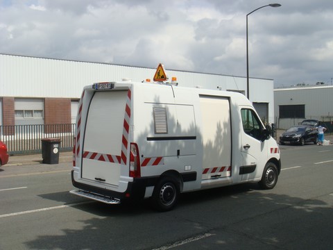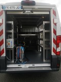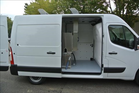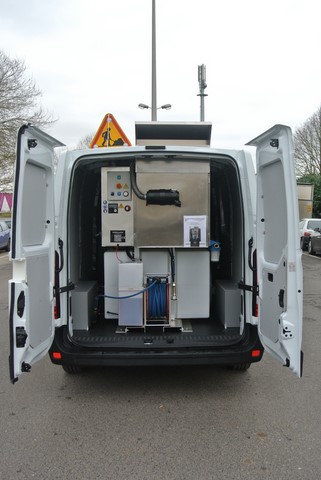 Equipement d'un master L3H2 avec signalisation, peinture anti-dérapante, meuble de rangement et un ensemble hydro-aérogommage hp eau chaude double postes.
