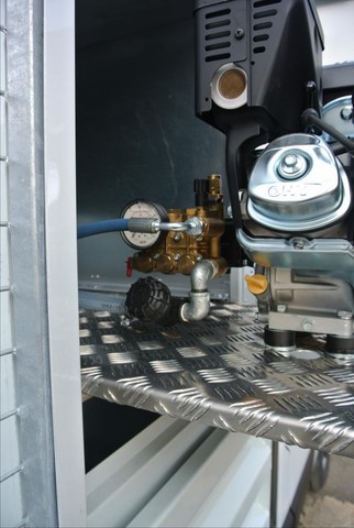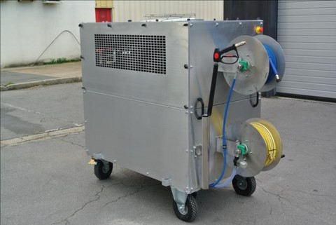 Equipement hp 250 bars eau froide capoté et insonorisé avec enrouleur et potence de lavage