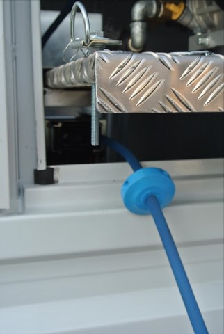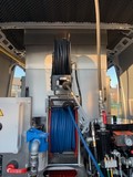 Porte tuyau inox fixé sur la porte arrière du véhicule avec 20 mètres de tuyau hydrogommage