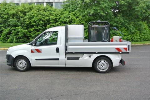 Euipement hp eau chaude diesel avec cuve akuminium 400 litres et enrouleur sur Piaggo Maxxi 1100 kgs.