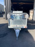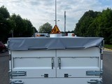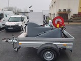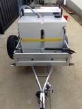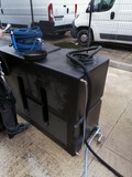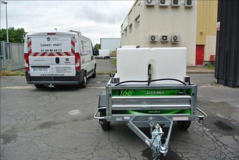 Livraison d'une remorque hydro aéro gommage hp eau chaude capotée moins de 750 kgs avec, option sablage ainsi qu'une cuve à eau verticale de 400 litres placée dans le sens de la longueur dans un kangoo.