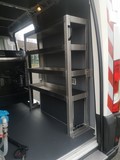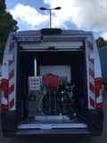 Aménagement complet de leur véhicule d'intervention anti tag avec fourniture d'une cuve à eau complémentaire, vestiaire, et armoires de rangement.