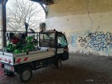 Nouveauté! Piaggo Maxxi 1100 kgs transformé au GPL avec caisse munie de rideaux et équipée d'un ensemble hydro aérogommage haute pression eau chaude insonorisé.