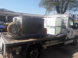Livraison d'un véhicule atelier avec étau et établi ainsi qu'un ensemble complet hydro aéro gommage hp eau chaude double postes diesel.